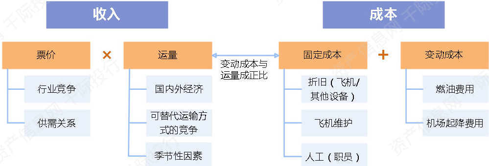 运量:影响因素较复杂。国际航线承运人相对固定,需求主要受宏观经济影响;国内航线则面临高铁等运输方式竞争。票价(基准票价折扣率):主要受供需关系和同业竞争程度影响,波动幅度较大。变动成本:不确定性主要是来自燃油成本。
