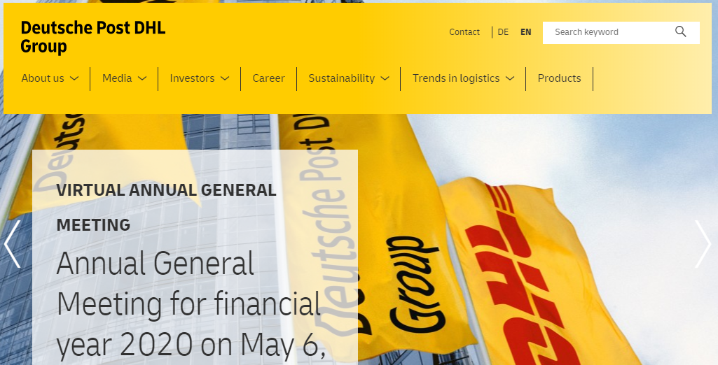 (2) 德国邮政[DPW.DF]是全球领先的邮政和物流集团。该公司为全球邮件和货物提供物流网络以及相关的信息和财务活动。通过Deutsche Post和DHL,该公司为通讯和物流(包裹,快递,信件业务)等范围的业务提供服务。该服务还包括标准产品从市场到工业供应链定制解决方案的报价。德国邮政也为客户提在新闻产品的投放以及广告目录方面提供支持,并为企业沟通提供整体解决方案。