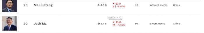 根据福布斯实时富豪榜,目前拼多多创始人黄峥的身家跌至280亿美元,全球排名跌至第54名,而在今年3月5日,其排名还为21名;网易创始人丁磊身家跌至272亿美元,排名从45掉到了第59名;由于美团在这波调整中,幅度较深,美团董事长王兴的身价损失较为惨烈,7月26日美团港股重挫13.76%,7月27日则继续暴跌17.66%,最低一度跌至190.4港元/股,相比今年的高点460港元/股,跌幅接近6成。因此王兴的身价跟着一落千丈,目前王兴的身家缩水至165亿美元,全球排名掉到了第116名。京东创始人刘强东的身家目前缩水至169亿美元,排名比王兴前一位为115名,而在这波大调整之前,王兴的全球排名在60左右,刘强东则在77名。快手创始人宿华在此轮剧震中,是受伤最重的富豪之一,目前其身价缩水至71亿美元,排名382名,而在今年3月5日,其财富值还为178亿美元,位列第107位。