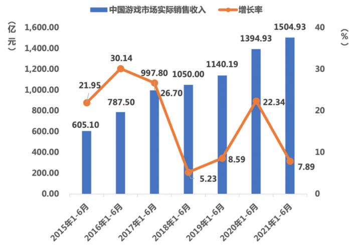 在中国游戏细分市场状况方面,《报告》指出,移动游戏是上半年国内游戏市场收入的主要来源。数据显示,2021年1-6月,国内市场中移动游戏实际销售收入占市场总收入的76.26%,客户端游戏为19.86%,网页游戏为2.01%。上半年国内移动游戏市场实际销售收入1147.72亿元,同比增长9.65%,增长额100.99亿元。移动游戏用户规模6.56亿,同比增长1.34%。