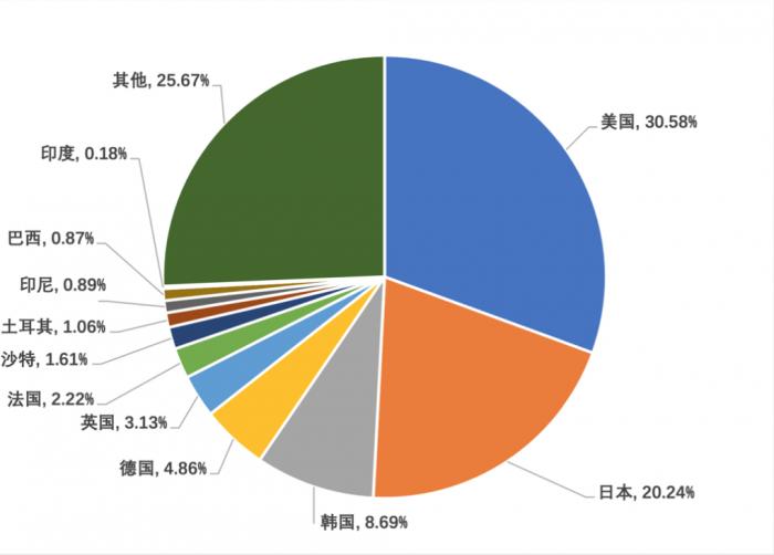 (中国自主研发移动游戏海外重点地区收入占比。)