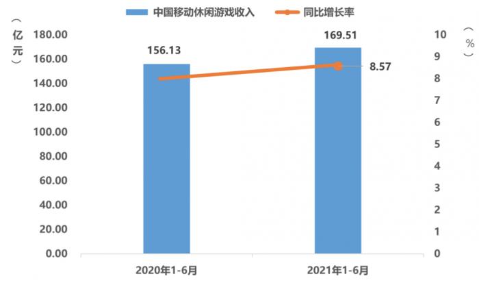 在中国游戏分品类市场状况方面,《报告》指出,由于休闲游戏的体验方式更符合用户的碎片化游戏习惯,因而具有较大市场潜力。数据显示,2021年上半年,国内移动休闲游戏市场收入169.51亿元,其中由内购产生的市场实际销售收入为39.76亿元,广告变现等间接收入129.75亿元,整体收入同比增长8.57%。