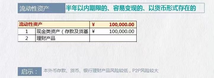 例如本外币存款、货币基金、余额宝、现金宝等各类BAOBAO、银行理财、银行理财、券商收益凭证等。这类资产的特点是风险比较低,交易方便。