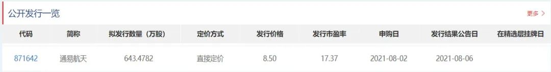 7月29日,全国股转网站显示,通易航天(871642)发行价出炉。