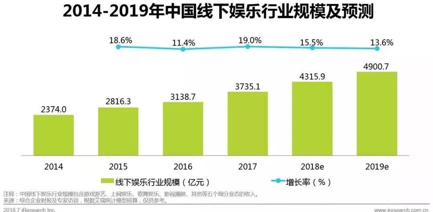 当年轻一代层出不穷地涌向娱乐领域,新潮事物诞生的速度总是快得令人措手不及。艾瑞咨询发布的《2018年中国新生代线下娱乐消费升级研究报告》显示,国内线下娱乐产业连续多年保持约15%的年均增长率,2019年线下娱乐市场总体规模达到4900亿元。