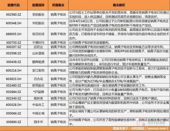 钠离子电池相关概念股及解析: