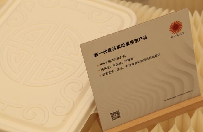 在近期举行的2021中国包装容器展上,跨国林业、造纸和包装产业巨头斯道拉恩索(Stora Enso)展出了其为生鲜食品和餐饮外卖包装行业量身打造的纸浆模塑产品。
