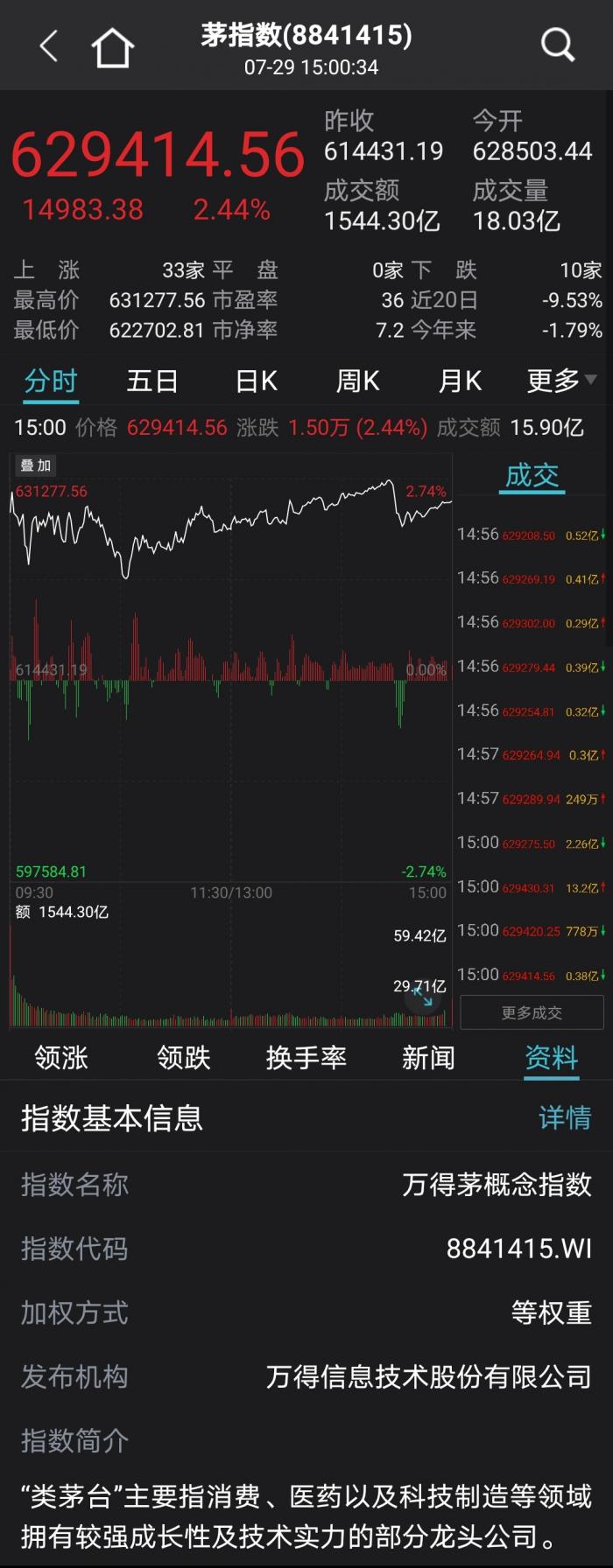 茅指数7月29日表现:
