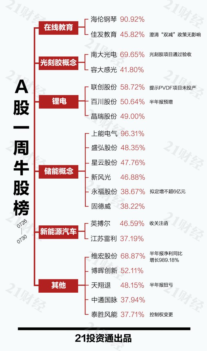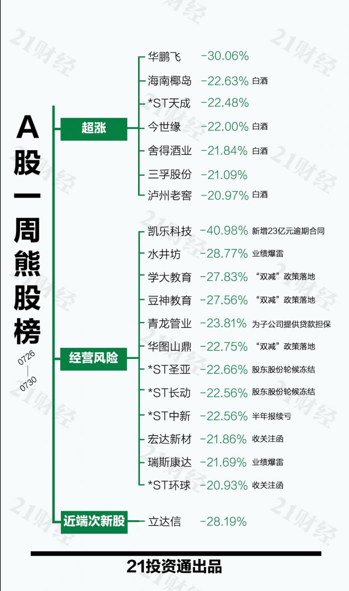 截至7月30日收盘,沪指报3397.36点,周跌4.31%,深成指报14473.21点,周跌3.70%,创业板指报3440.18点,周跌0.86%。