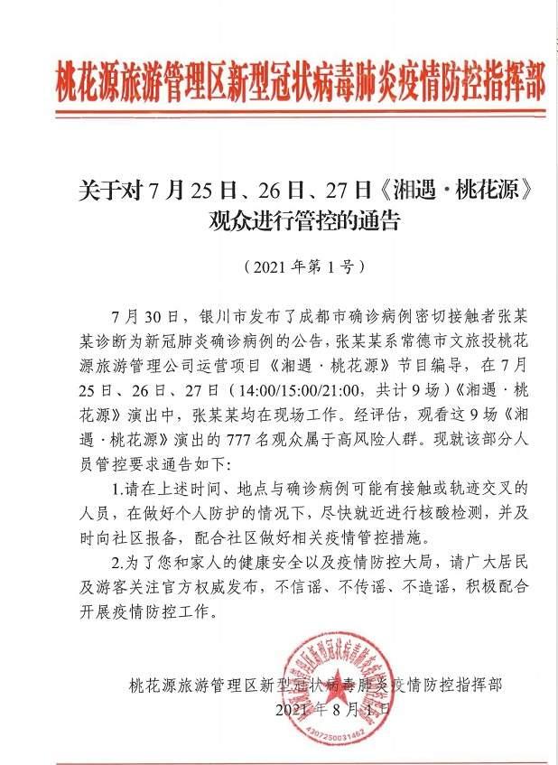 湖南常德桃花源景区:9场演出777名观众高风险