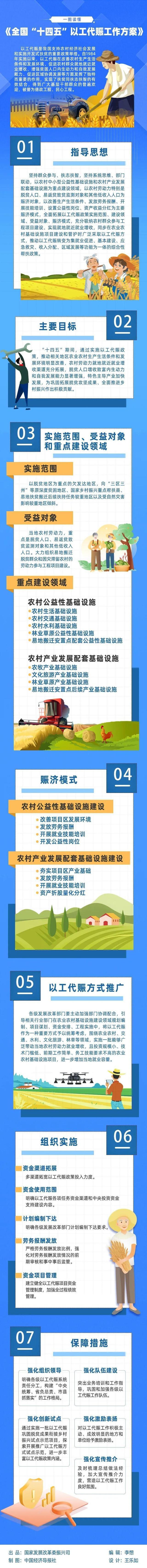 为贯彻落实“十四五”规划《纲要》和《中共中央国务院关于实现巩固拓展脱贫攻坚成果同乡村振兴有效衔接的意见》部署要求,近日,国家发展改革委印发《全国“十四五”以工代赈工作方案》(以下简称《工作方案》),为“十四五”时期各地开展以工代赈工作提供指导和遵循。《工作方案》在全面回顾以工代赈政策30多年的主要成就、深入分析“十四五”面临的形势任务基础上,全面拓展了未来五年以工代赈实施范围、受益对象、建设领域和赈济模式,明确要求在农业农村基础设施建设领域积极推广以工代赈方式,推动以工代赈由专项扶贫政策向集就业促进、基本建设、应急救灾、收入分配、区域发展等功能为一体的综合性帮扶政策转变,助力巩固拓展脱贫攻坚成果、全面推进乡村振兴。