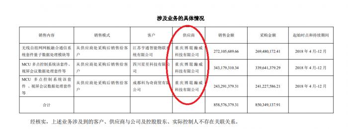 21世纪经济报道记者注意到,飞利信(300287.SZ)2019年6月18日披露的“关于收到深圳证券交易所问询函并回复的公告”显示,公司部分业务的供应商是重庆博琨,而重庆博琨是瑞斯康达的逾期供货供应商,这个逾期供应商就是瑞斯康达下游客户富申实业推荐的。