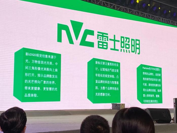 记者在现场看到,焕新后的雷士LOGO更图形化,V字变成三角光束,同时优化了中英文的笔画结构、粗细和空间。