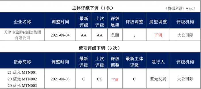 11.天津旅控集团:大公将其主体信用评级展望由“稳定”调为“负面”