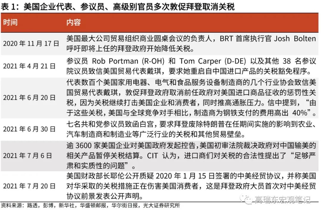 美方企业代表、议员等,今年以来多次敦促拜登政府取消关税,或者是重启关税豁免程序。去年以来,就有多个美国企业代表、议员等,公开敦促拜登政府取消对华关税。7 月 20 日,美国财政部长耶伦公开表示,美国对华采取的关税措施正在伤害美国消费者,这也是拜登政府大员首次对中美经贸协议前景发表公开声明。
