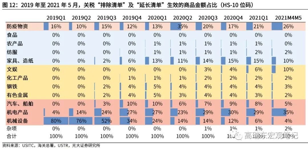 [1]美方公布的排除清单及延期清单,为HS-10位码。但是,USTR上能够查询到的美国进口商品,最细可达8位码数据。因此,我们在计算时,是将10位码归类到8位码,测算相应品类的金额,会导致关税排除及关税延长的清单占到总进口金额的比例被高估。