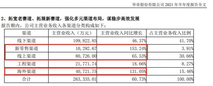 具体到各个渠道的表现,华帝上半年增幅较大的渠道分别是新零售渠道、线上渠道和海外渠道。