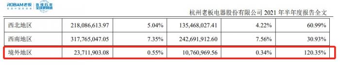 而老板电器上半年海外销售渠道业绩同样有明显上涨。数据显示,报告期内公司境外地区营业收入为2371.19万元,虽然占总营业收入比重仅0.55%,但同比增长120.35%。而华东市场仍然是老板电器的主力市场,上半年贡献了20.55亿元收入,占总营收的47.50%。
