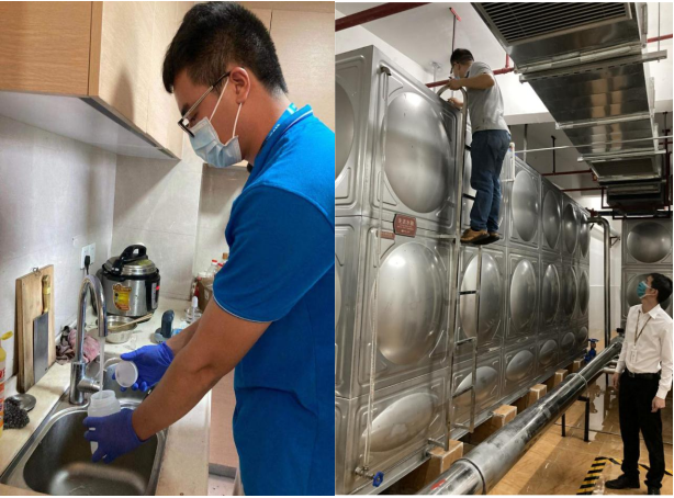 随后,区水务局工作人员来到景业荔都小区供水泵房,详细检查供水设施挂网上锁、水箱清洗、消毒记录等有关内容台账,同时对物业工作人员在供水环境安全、制度措施落实方面提供指导意见。