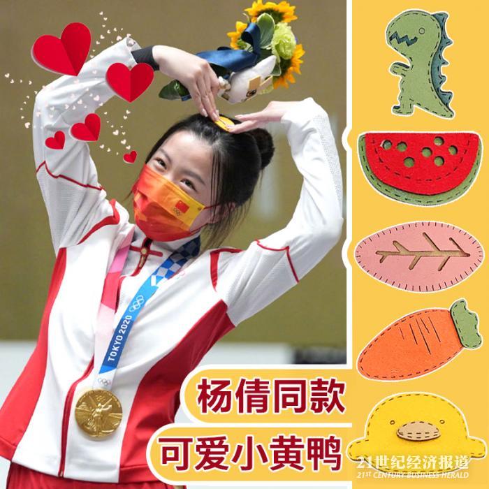 “杨倩夺冠当天晚上,我们的旺旺响个不停——很多人在问:这款产品是不是杨倩同款?江浙一带商人的嗅觉非常灵敏,动作也很快,我们之前就有卖过“小黄鸭发卡”和“胡萝卜皮筋”,当天晚上就赶紧加班生产,随后几天里接到了大批生产订单。”义乌市旺业饰品厂负责人卢清告诉21世纪经济报道。