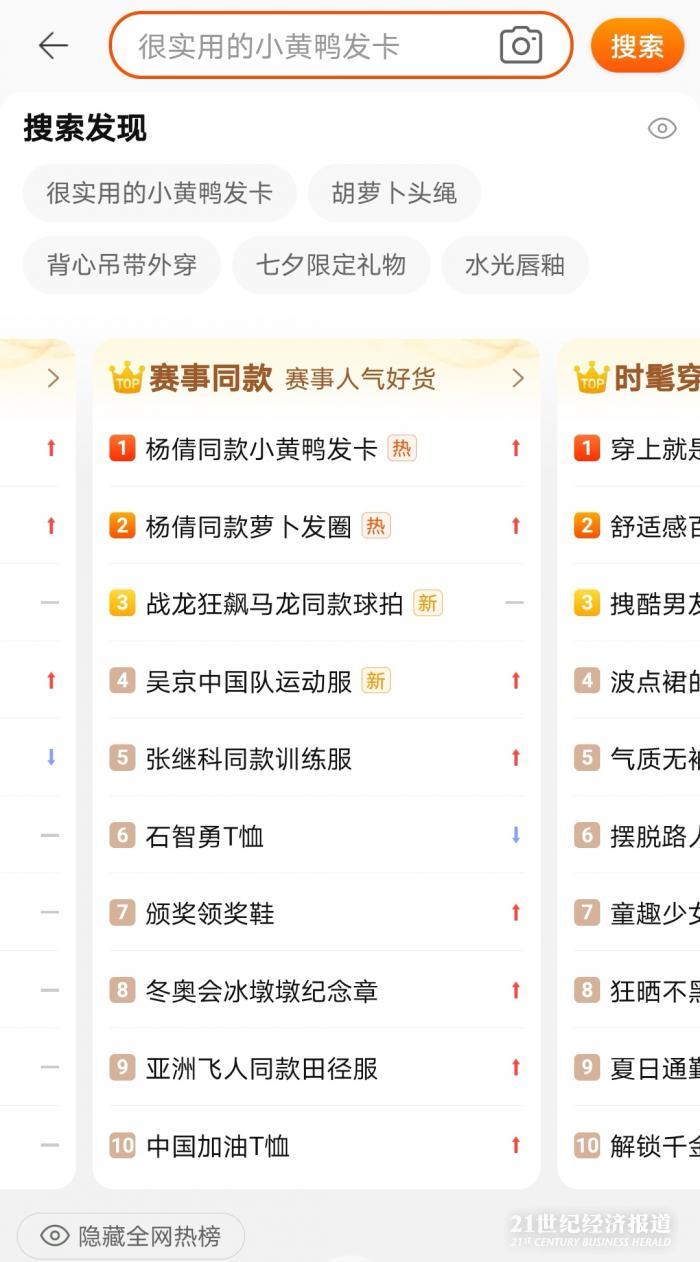 21世纪经济报道记者夏旭田报道 “动手晚了!今天去市场(义乌国际商贸城)转了一圈,到处都是杨倩同款,基本上每家店都在卖。”接受21世纪经济报道记者采访时,义乌市晶梵电子商务有限公司负责人胡建峰刚刚拿到一批“杨倩同款”小黄鸭发饰,却发现小黄鸭早已占领了义乌的大街小巷,成为这个全球小商品集散地的“当红炸子鸭”。