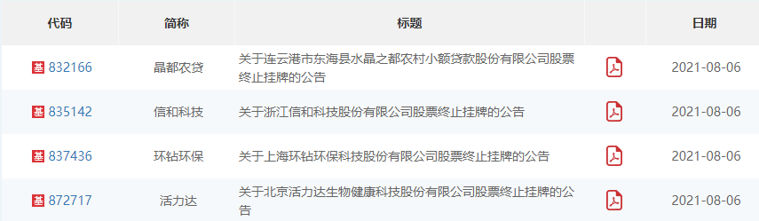 8月6日,新三板基础层公司神鹰城讯(834249)、文广农贷(831618)、达唯科技(836020)、首宏医疗(872872)终止挂牌。