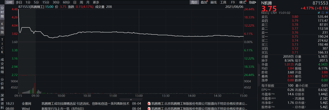 8月6日,凯腾精工(871553)成功挂牌,成为第59家挂牌精选层企业。