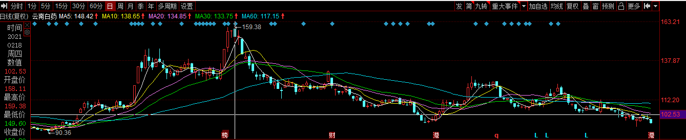云南白药在春节前一波上涨,一大原因是资金疯狂抱团白马股。之后,其股价未能再创新高。