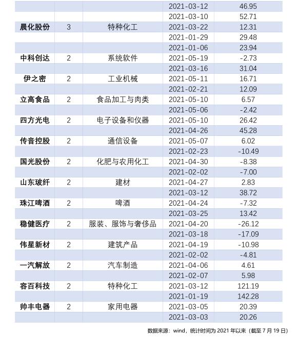 我们筛选了理财子公司调研后股价涨幅超过50%的调研记录(截止2021年7月19日数据),发现招银理财有11次调研后被调研上市公司股票价格上涨超过50%,汇华理财有8次调研后股价上涨超过50%,兴银理财有7次调研后被调研上市公司股票价格上涨超过50%。