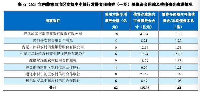 内蒙古自治区文件显示,2020年11月财政部下达的用于支持化解中小银行风险的2020年新增专项债券的正式额度中,内蒙古自治区获得的额度为162亿元,加上此次拟发行的专项债额度,内蒙古162亿专项债补充资本金的额度正好用完。