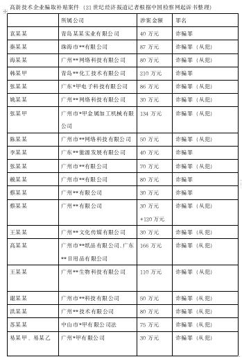 在中国检察网上以“高新技术企业+诈骗”检索获得相关文件数量有52份,其中一年内文件就有40份。21世纪经济报道记者按照文件发布时间顺序,对其中20份文件进行梳理。在这20份高新企业骗补的起诉书中,有19份涉事案件均发生在广东省。