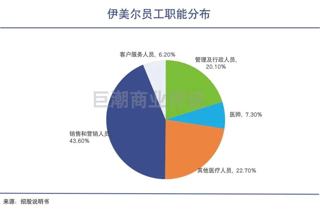 在伊美尔的员工构成,销售和营销人员占比高达43.6%,是所有职能当中最高的,也远高于医师和其他医疗人员占比(30%)。