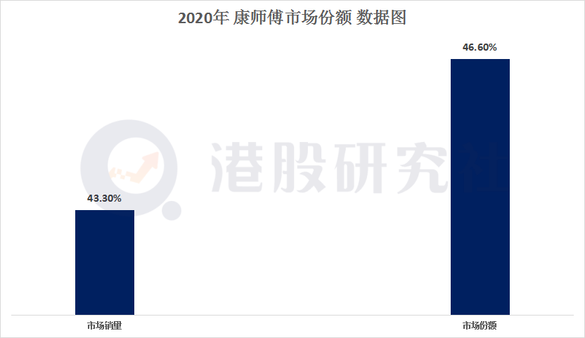 根据市场调研机构数据显示,康师傅方便面的市场销量和市场销售额占比分别为43.3%、46.6%,几乎占据方便面行业的半壁江山。