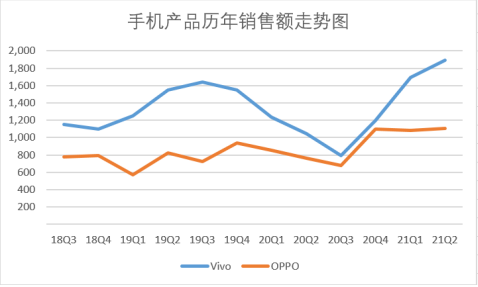 在销量上,vivo也始终力压OPPO一头。