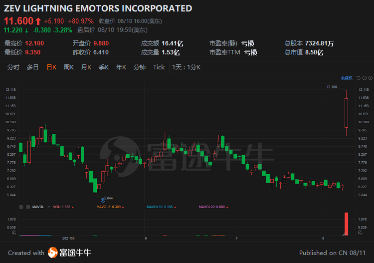 6、抱上巴菲特大腿,美商用电动车制造商Lightning eMotors暴涨80%