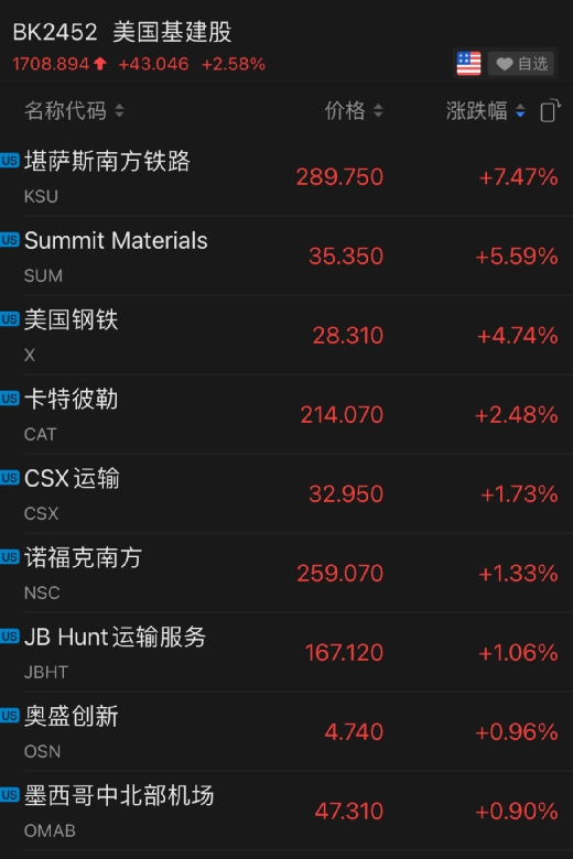 在基建股的带动下,标普500指数和道琼斯指数均创下历史新高。