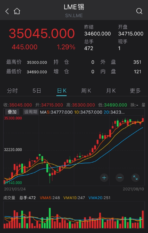 其中,伦锡收盘价格更是创下历史新高,收盘首次收盘涨破3.5万美元。