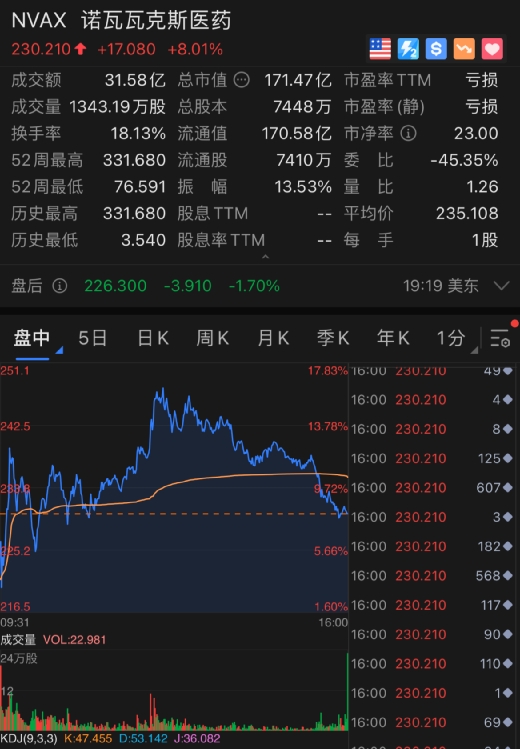 但周一涨超12%的诺瓦瓦克斯却在周二继续上涨,收盘涨幅达8%。