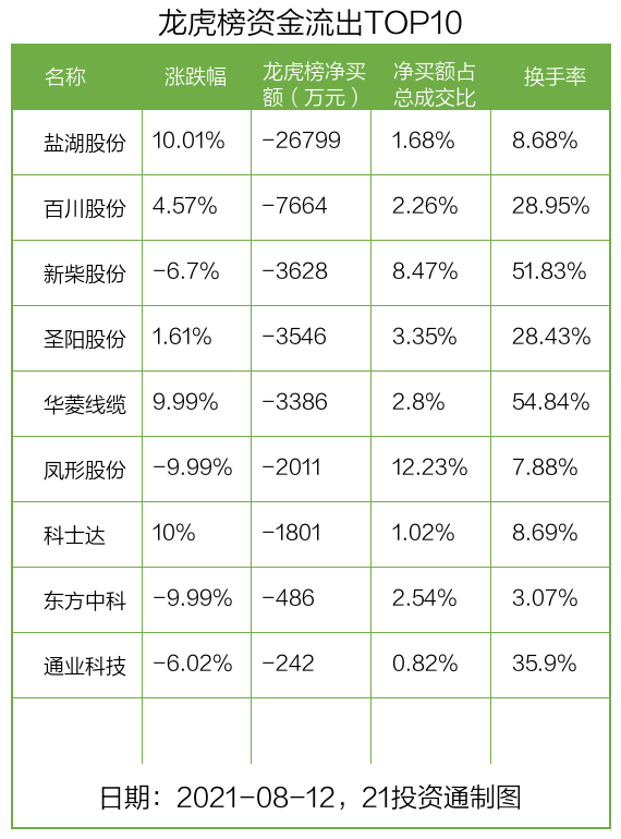 而龙虎榜中资金净流出最多的是盐湖股份(000792.SZ),被净卖出为2.68亿元,占总成交金额的1.68%。盐湖股份收盘上涨10.01%,换手率为8.68%。