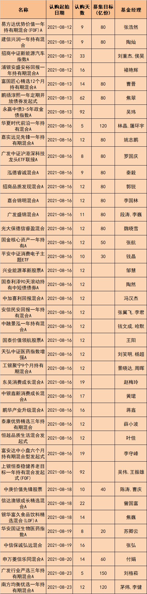 易方达中证沪港深300ETF由8月13日延长至9月10日。此外,申万菱信睿选募集截止日由8月20日延长至9月17日。