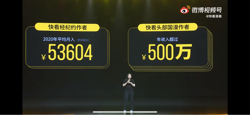 在这场发布会里,除了漫剧方面的措施,另一个引人注意的是平台漫画作者的收入。