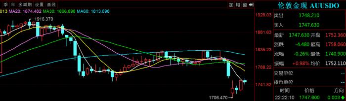 受制于美元指数上涨,贵金属则悉数下跌。今晚,黄金已经击穿1750美元/盎司的支撑,最低跌至1740.9美元/盎司,波动性更大的白银更是让市场胆战心寒,盘中跌幅一度超过2%,最低为22.98美元/盎司。