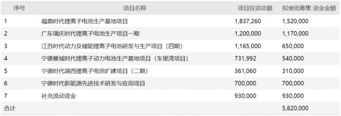 2、宁德时代:拟定增募资不超过582亿元,用于多个锂离子电池生产基地项目