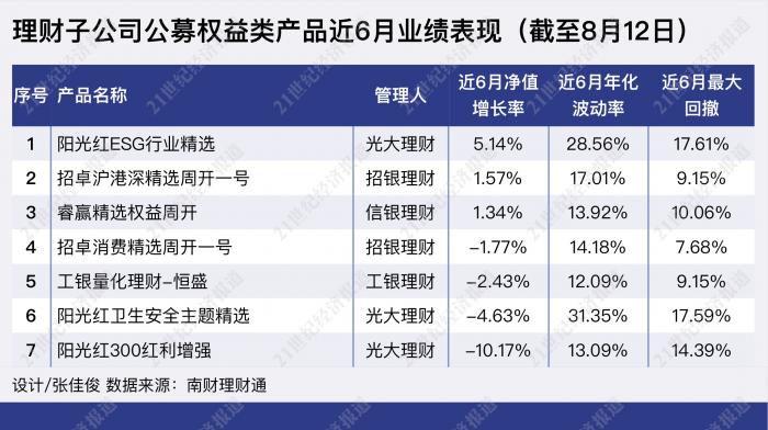 目前,银行理财子公司发行的权益类公募产品共有13只,存续期限大于6个月的有7只。