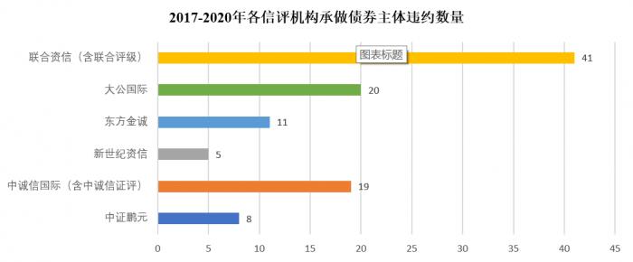 但从违约数量来看,2017-2020年间,联合评级承做的债券主体违约数量最高,在四年间达到28家,若加上母公司联合资信“踩雷”的违约债券主体,将达到41家,为各公司之首。