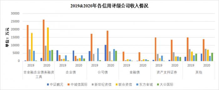 记者梳理了中国银行间市场交易商协会披露的各信评公司近两年业务运行及合规情况通报。中诚信国际、联合资信连续两年非金融企业债务融资工具贡献的收入占比在各项业务中均位列第一。此外,新世纪资信、大公国际在2020年非金融企业债务融资工具贡献收入占比也最多。