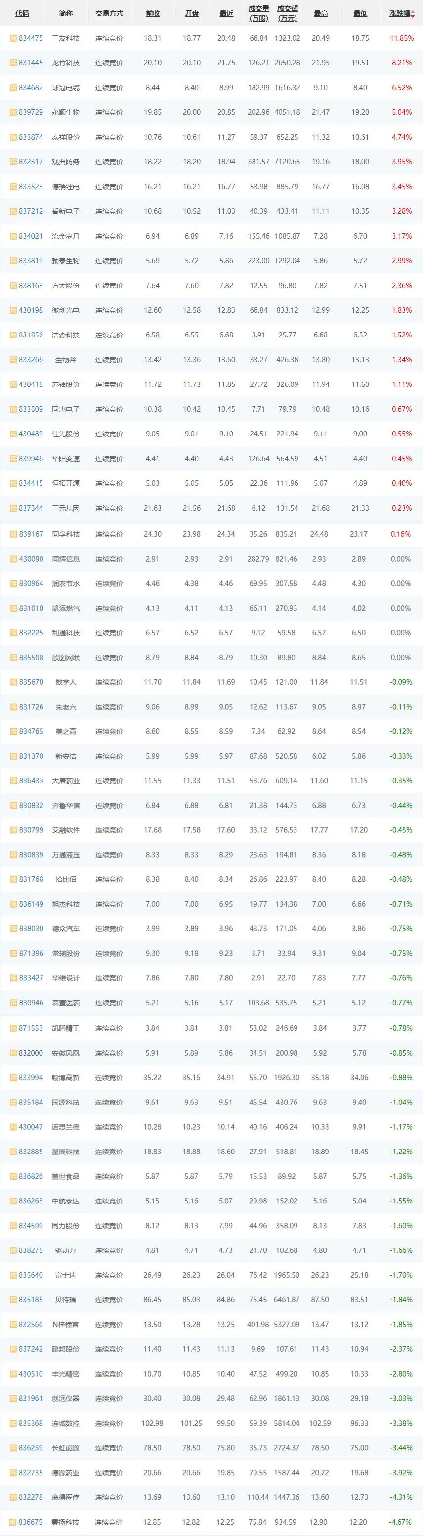 8月13日,精选层普跌,21家企业上涨,5家平盘,35家下跌。其中,三友科技(834475)上涨11.85%,涨幅居首;其次,龙竹科技(831445)上涨8.21%;秉杨科技(836675)跌幅居首,下跌4.67%;鹿得医疗(832278)居次下跌4.31%;同辉信息(430090)、润农节水(830964)平盘。