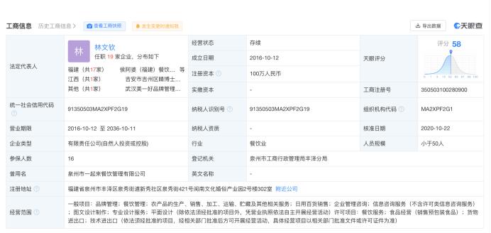 据公众号“美一好”介绍,林文钦先后创立了“意淇港式下午茶”、“大喜麻辣拌”、“锅聚侠”、“甲如花甲粉”等多个知名餐饮连锁品牌,全国加盟店超500余家。