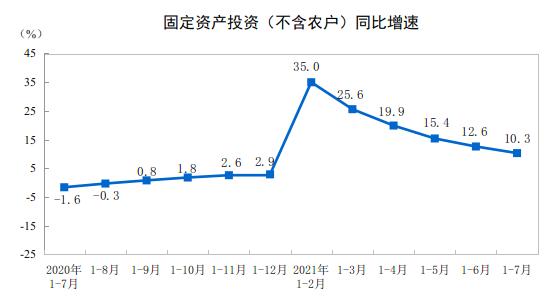 国家统计局:1-7月份全国固定资产投资(不含农户)增长10.3%