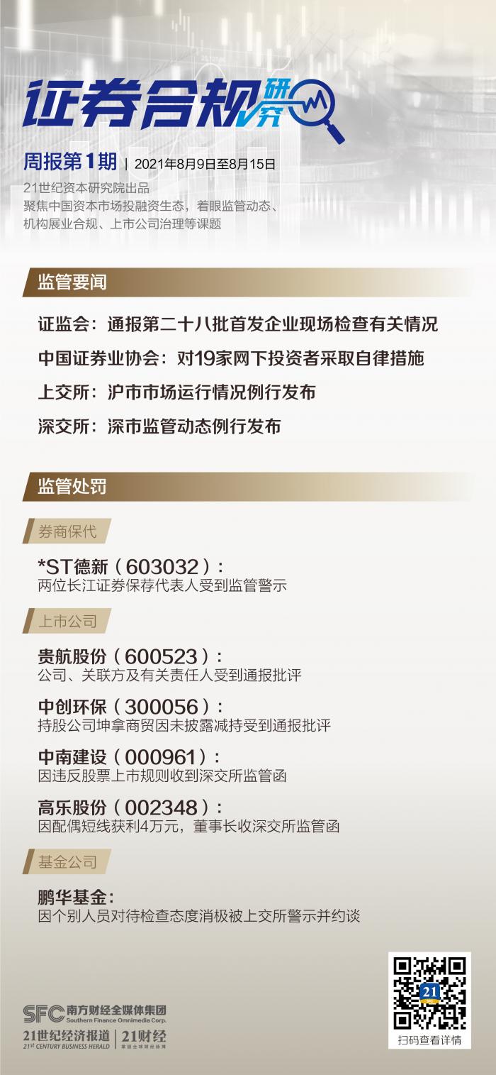 2021年1月,中国证券业协会组织实施了首发企业信息披露质量抽查第二十八次抽签工作。8月13日, 证监会通报该批次首发企业现场检查有关情况。此次检查对象共包括7家首发申请企业,其中主板1家,科创板3家,创业板3家。